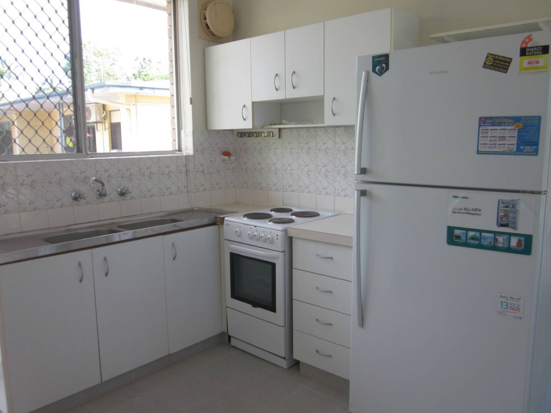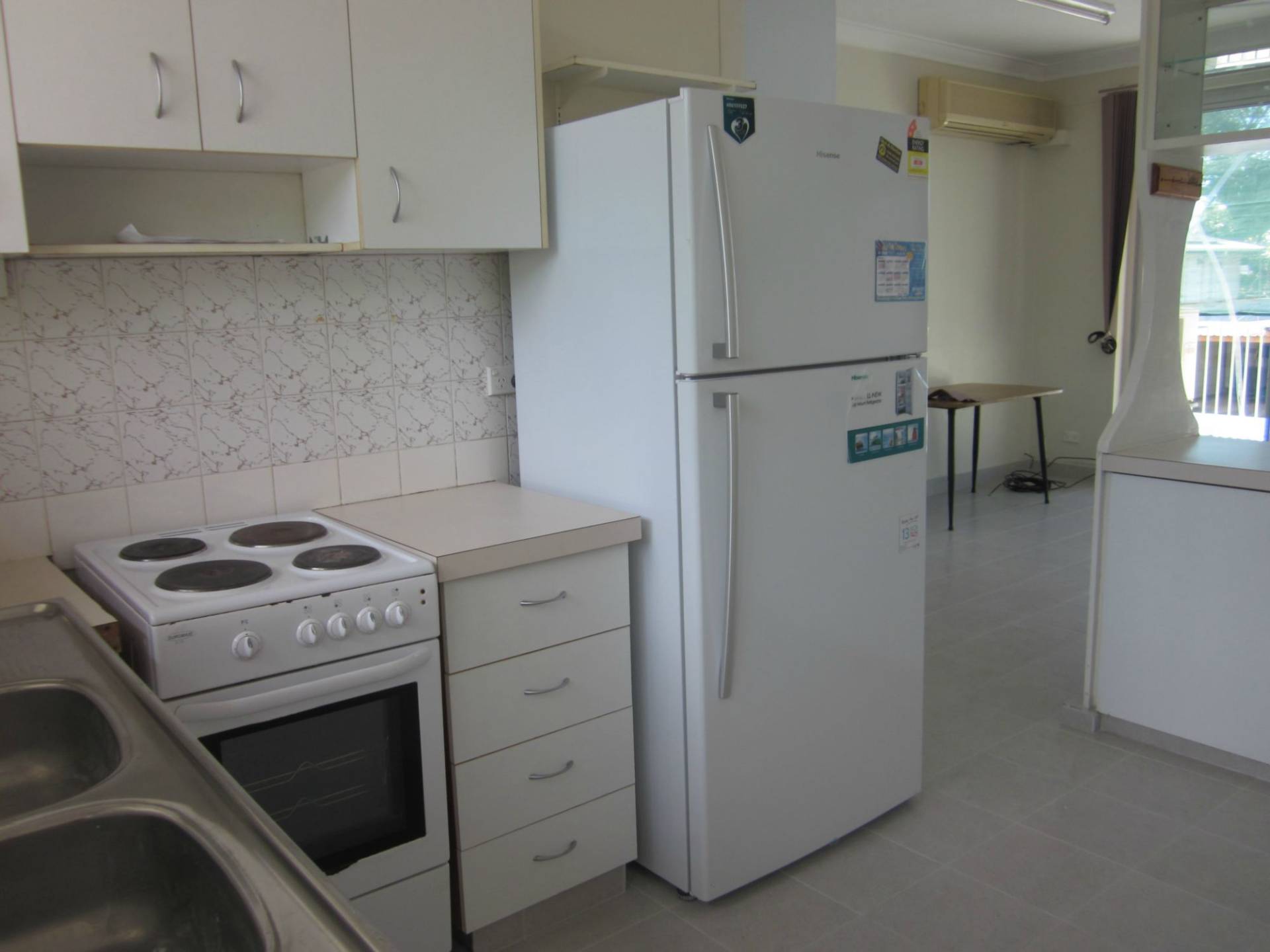 - Kitchen with ample cupboard space with fridge included.