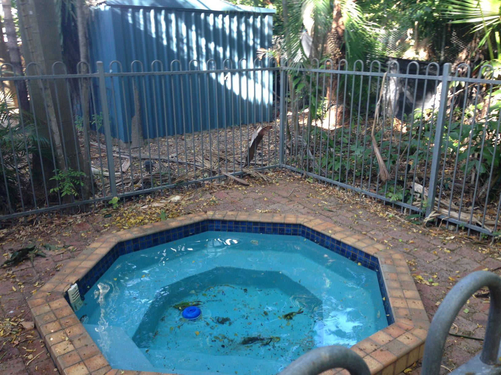 - Fenced spa nestled in the tropical garden