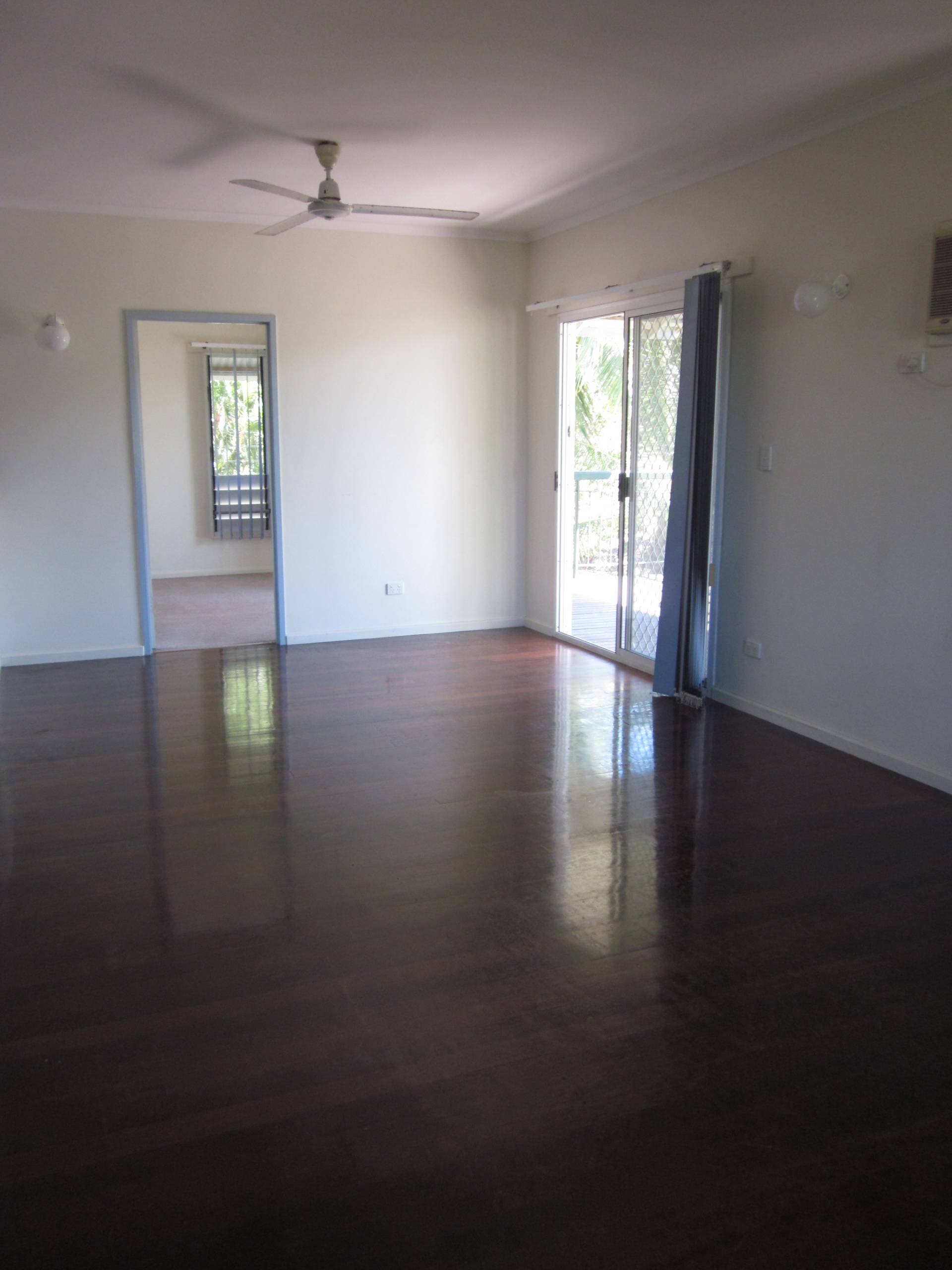- Polished timber floorboards