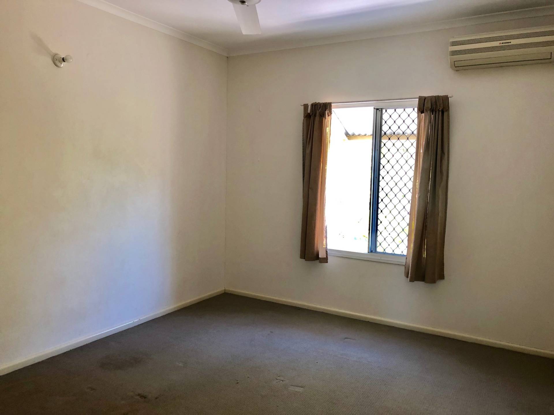 - Three bedrooms, (or two plus study) carpeted and air conditioned