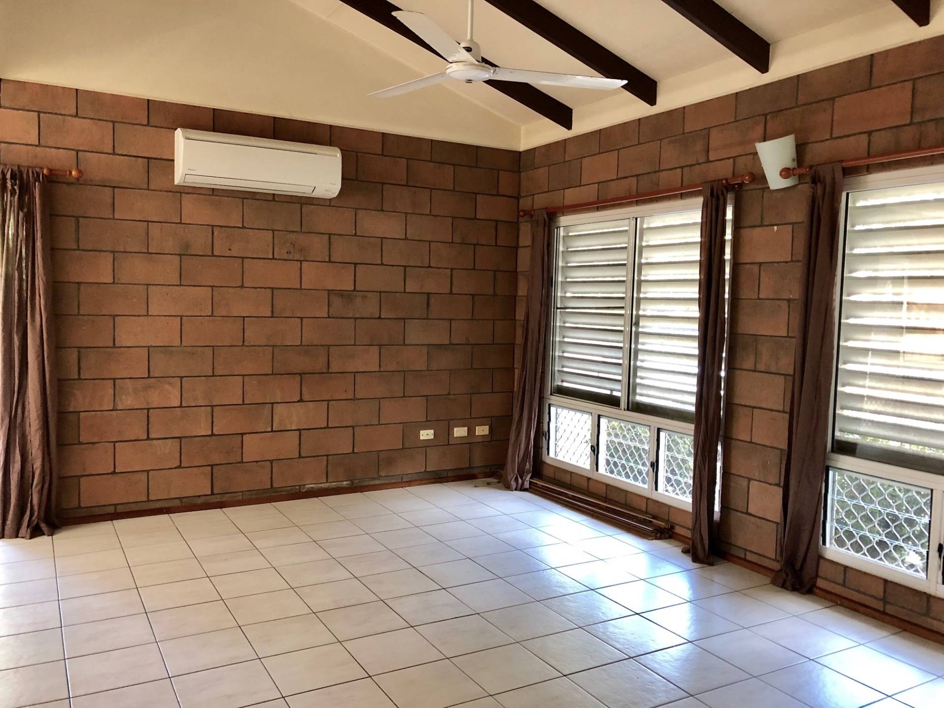 - Open plan living and dinning with a high ceiling