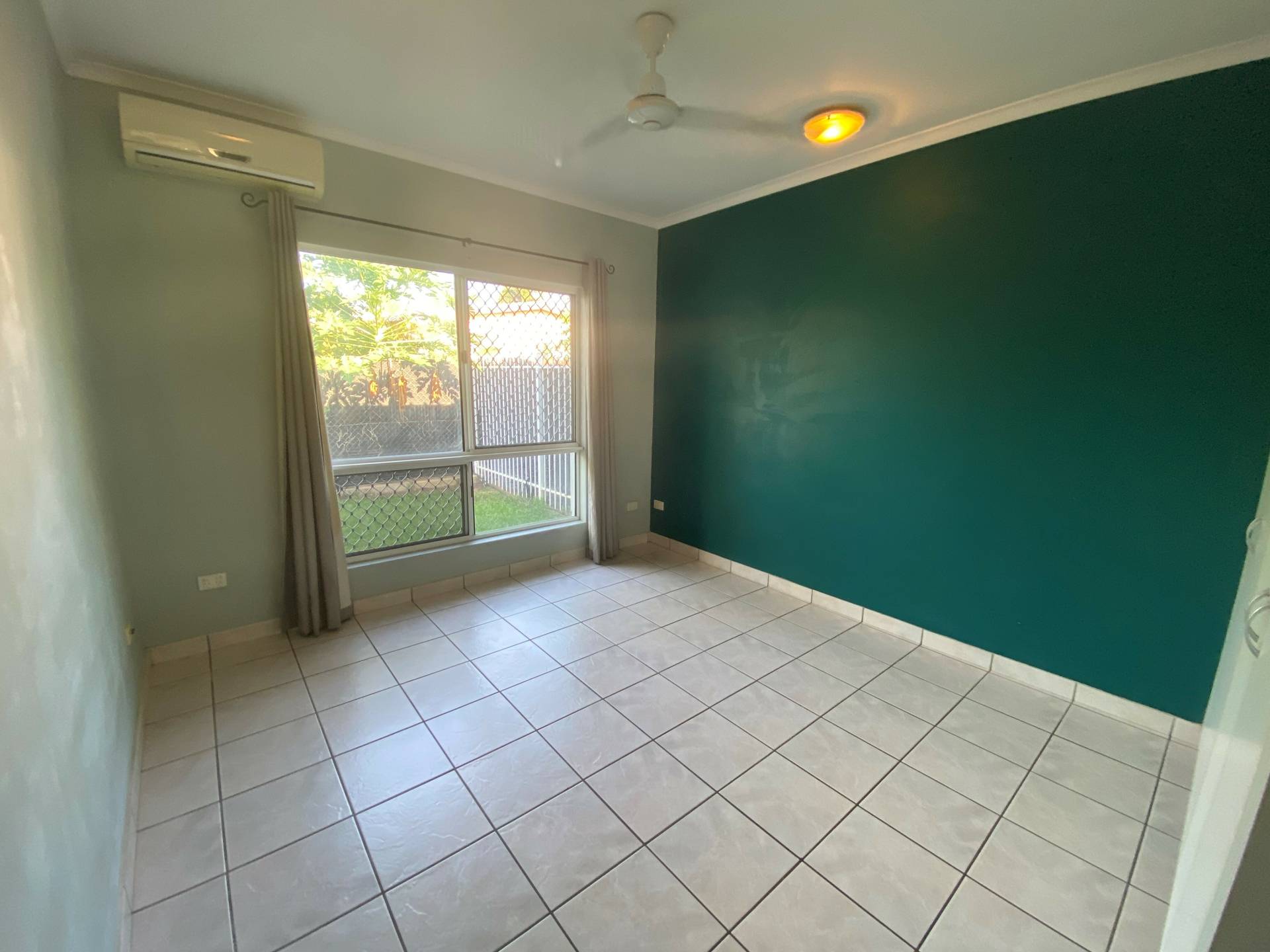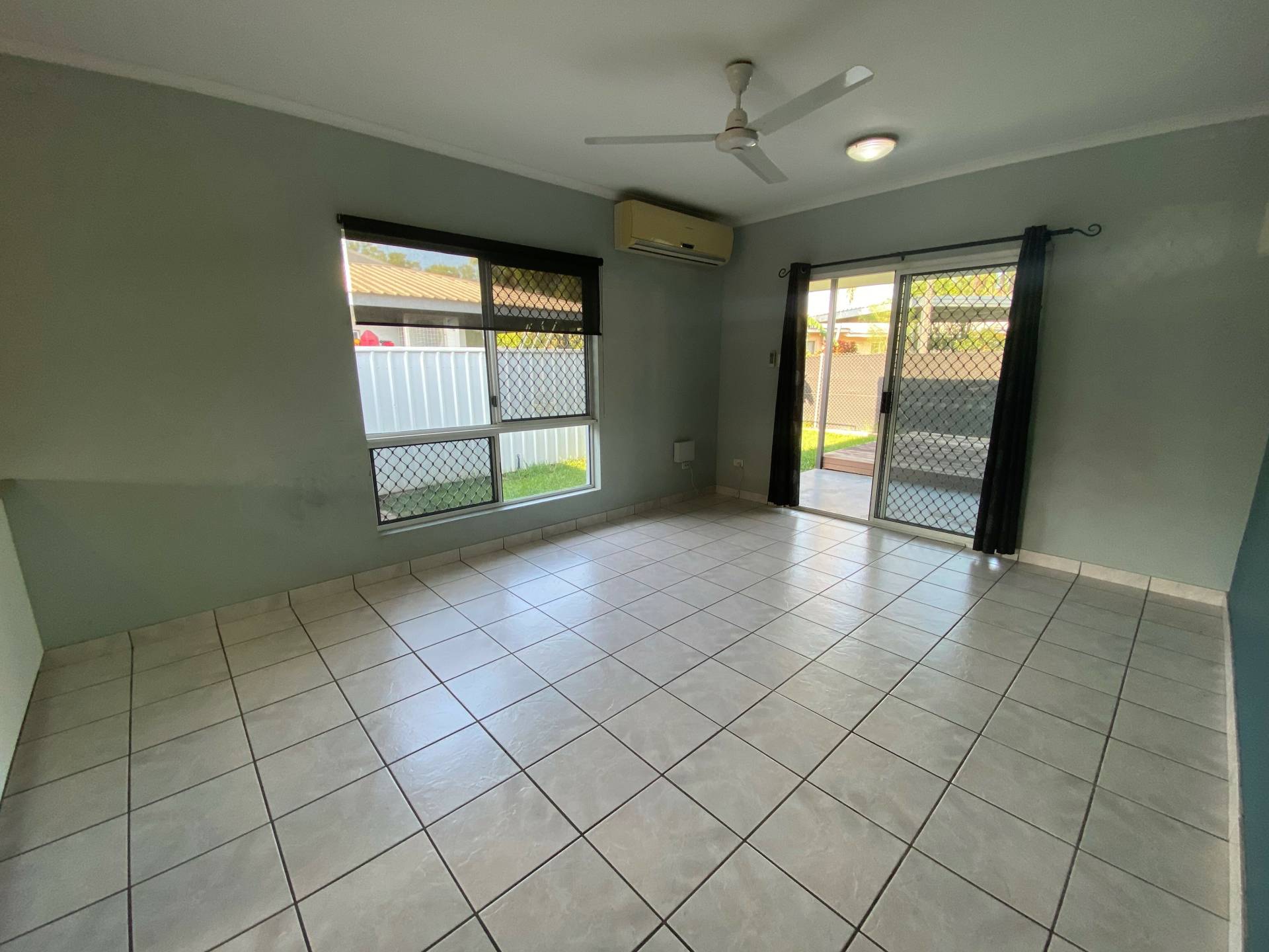 - Fully tiled with an open plan living/dining room