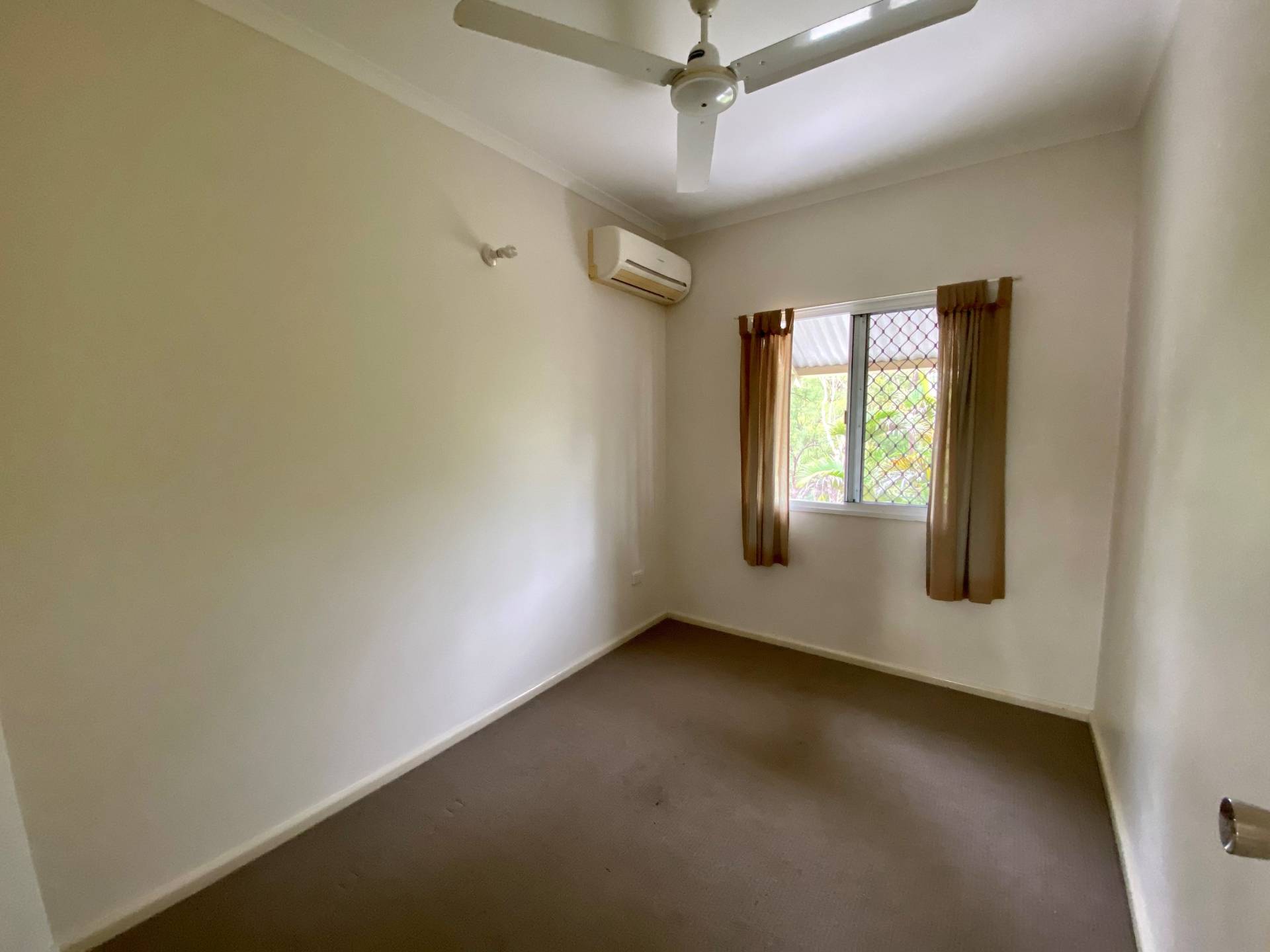 - Three bedrooms, carpeted and air conditioned