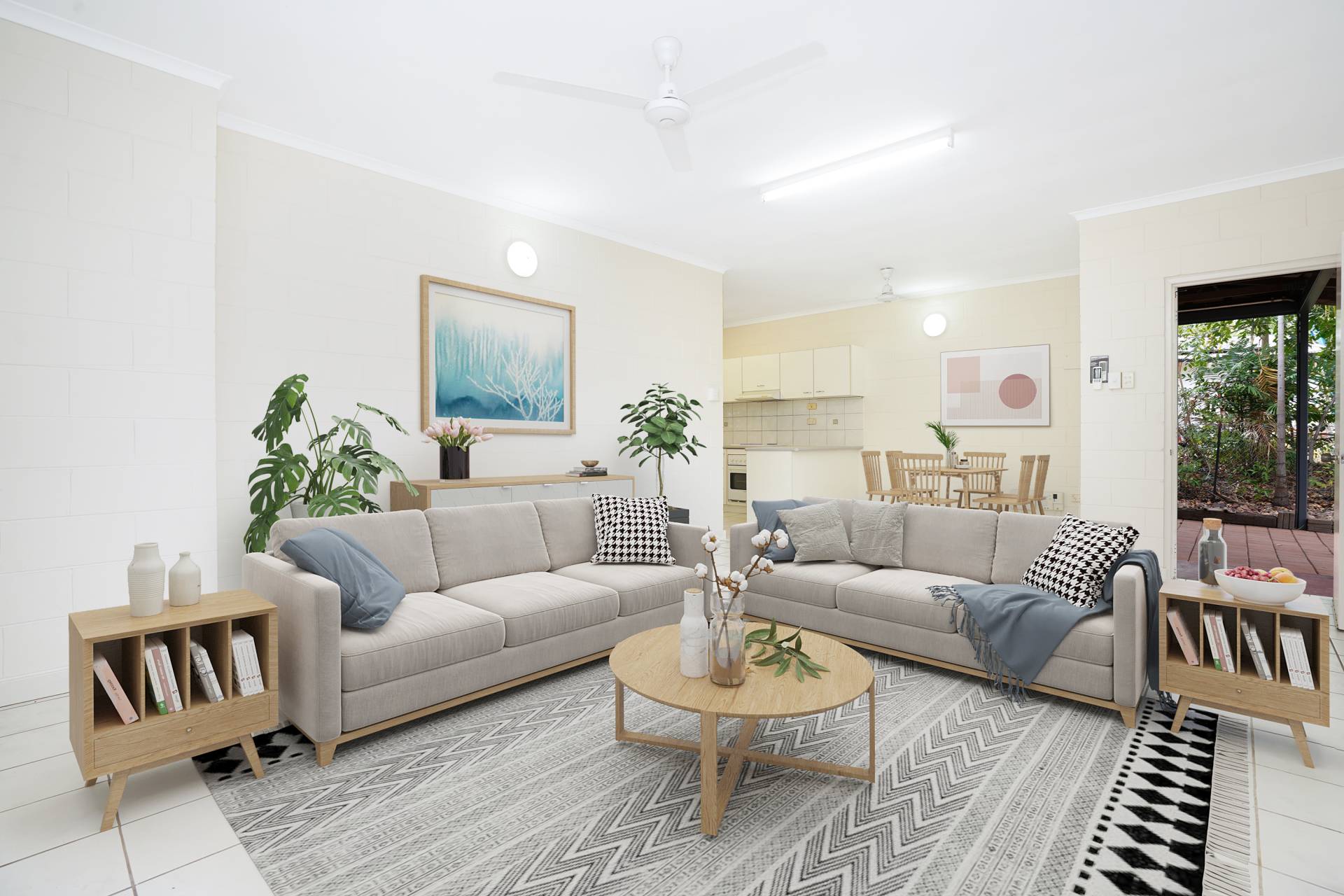 - Open plan living space with split system air-conditioning