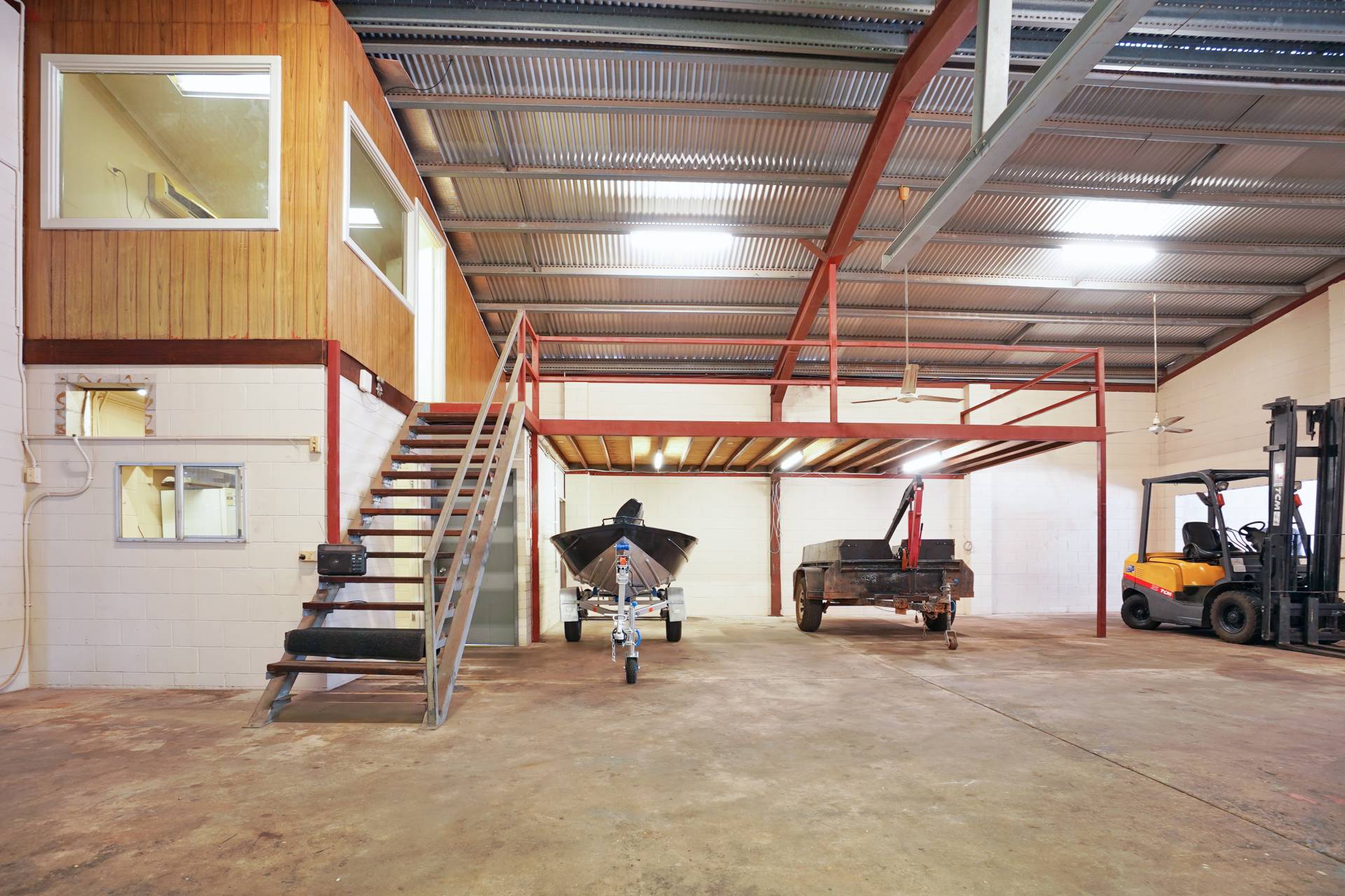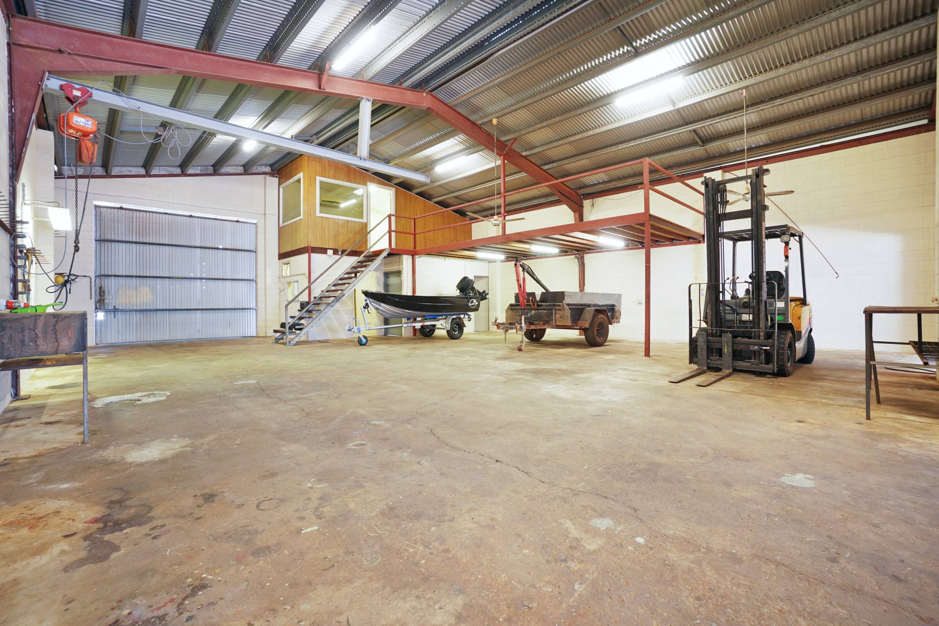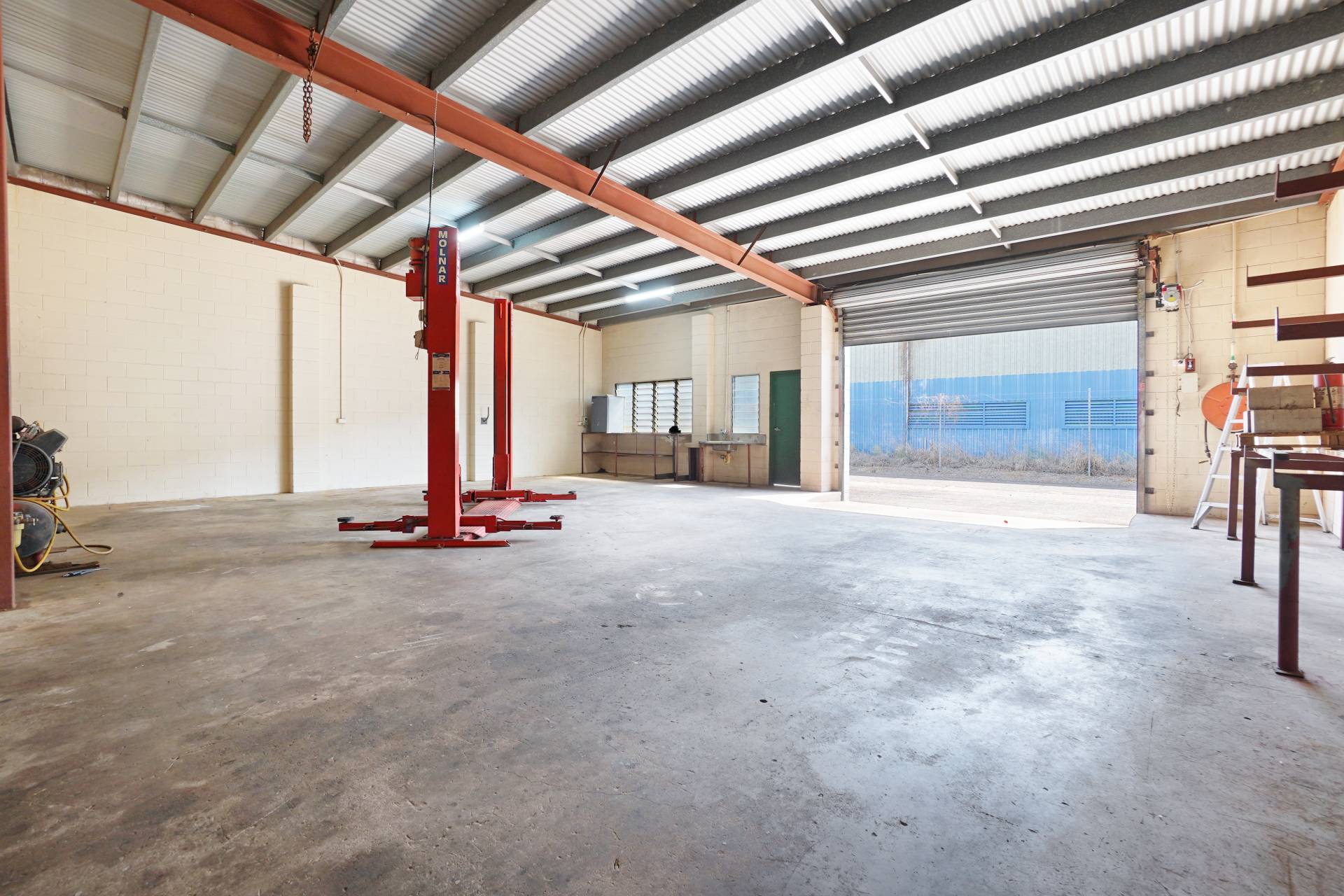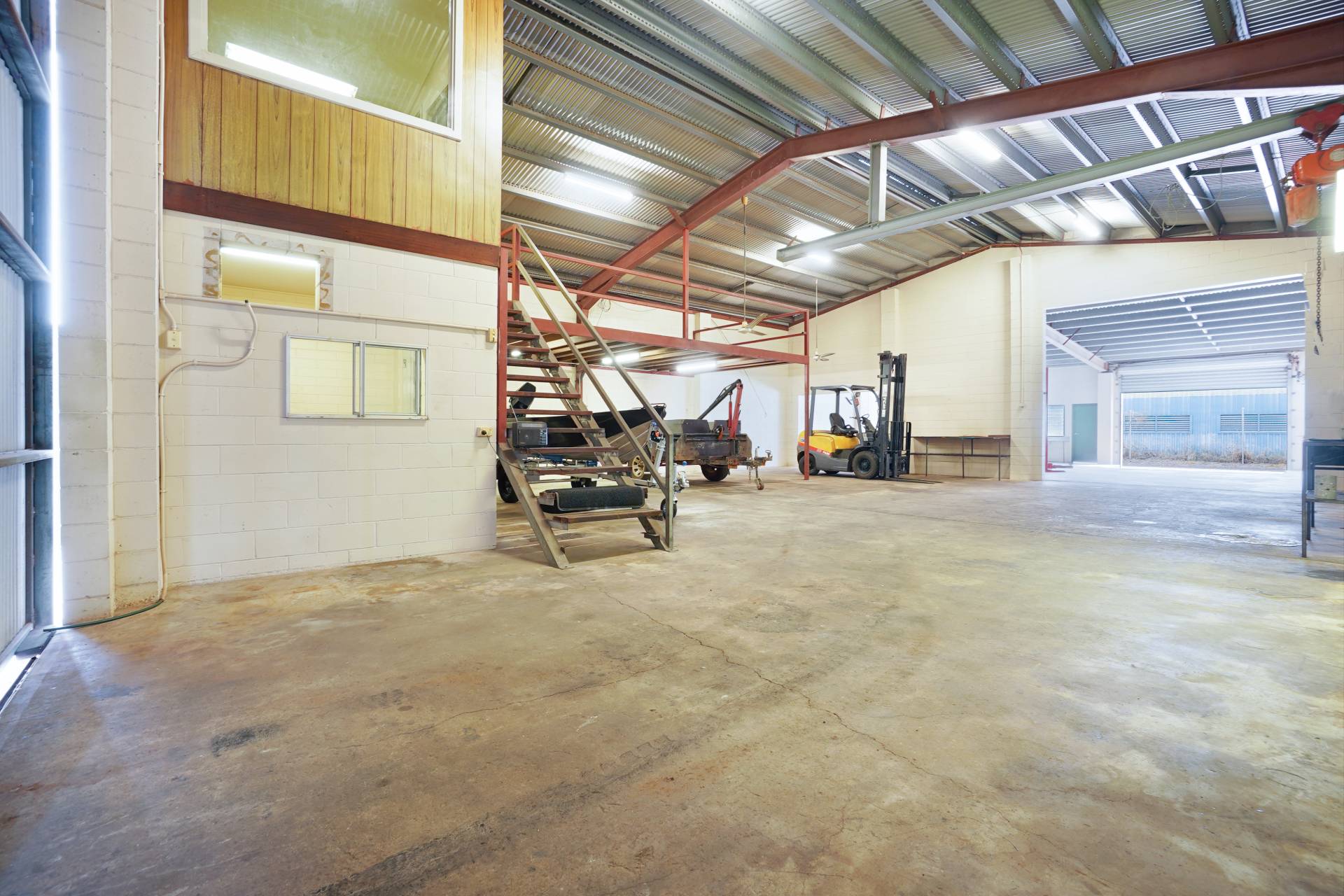 The Ideal workshop warehouse for your business or trade! Centrally situated in Berrimah's Industrial precinct. Strata Titled warehouse area of 280m2 with office and toilet. Front and rear access and all around vehicle access. Sale includes Gantry crane, compressor, fork lift and two post hoist.