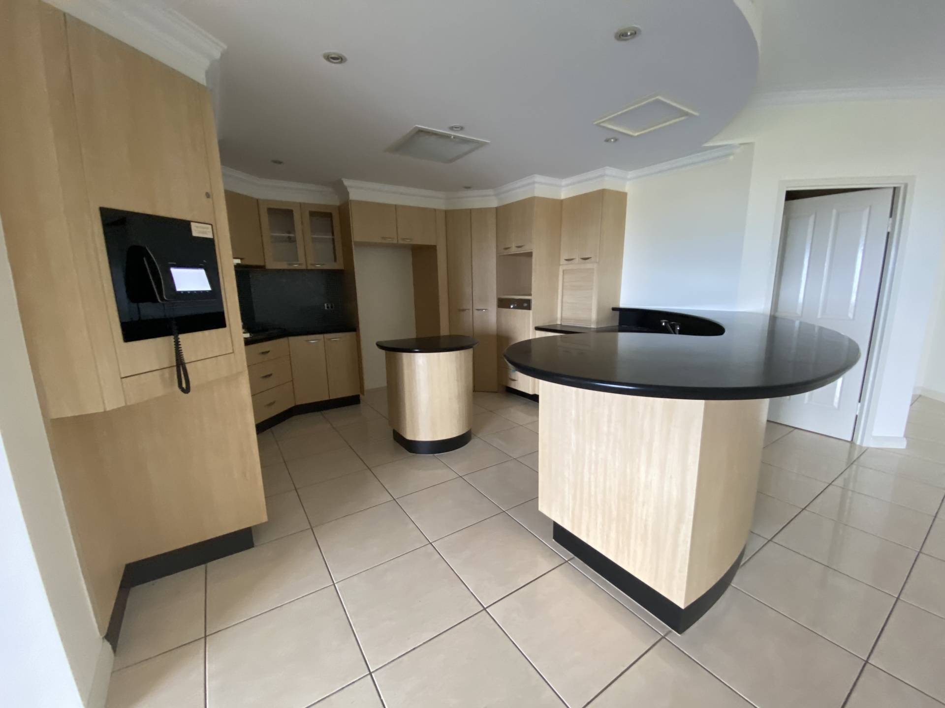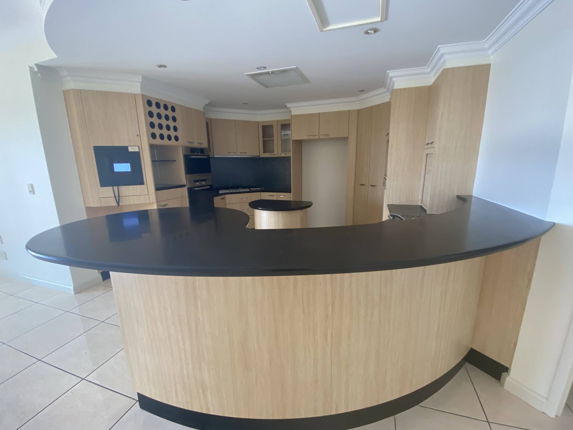 - Modern kitchen with stainless steel appliances including a dishwasher, ample cupboard space and spacious breakfast bar