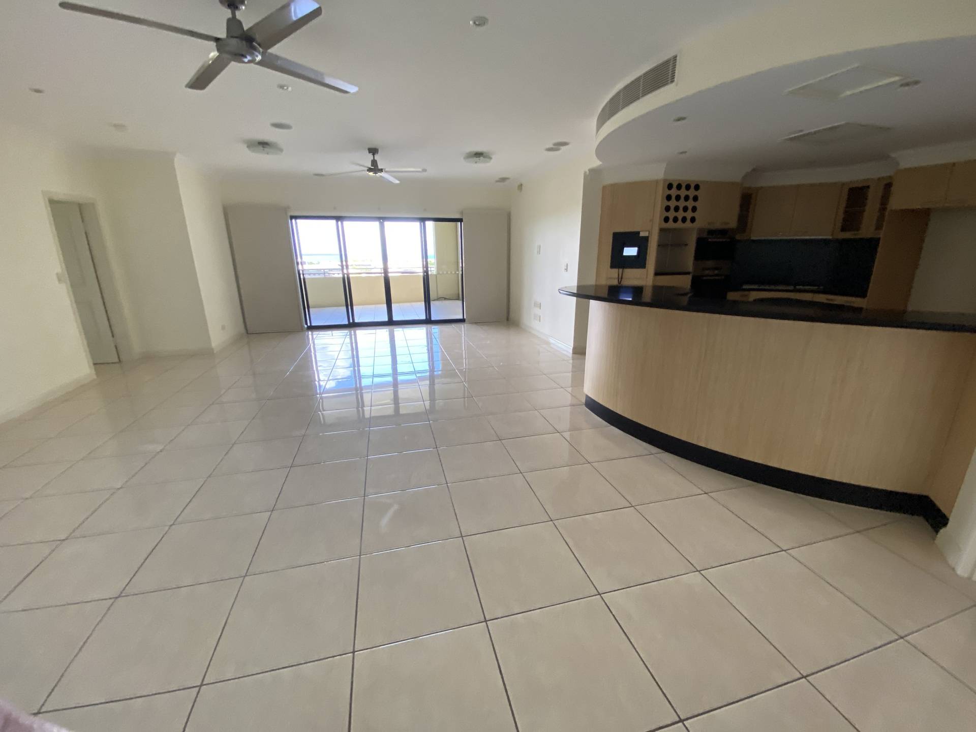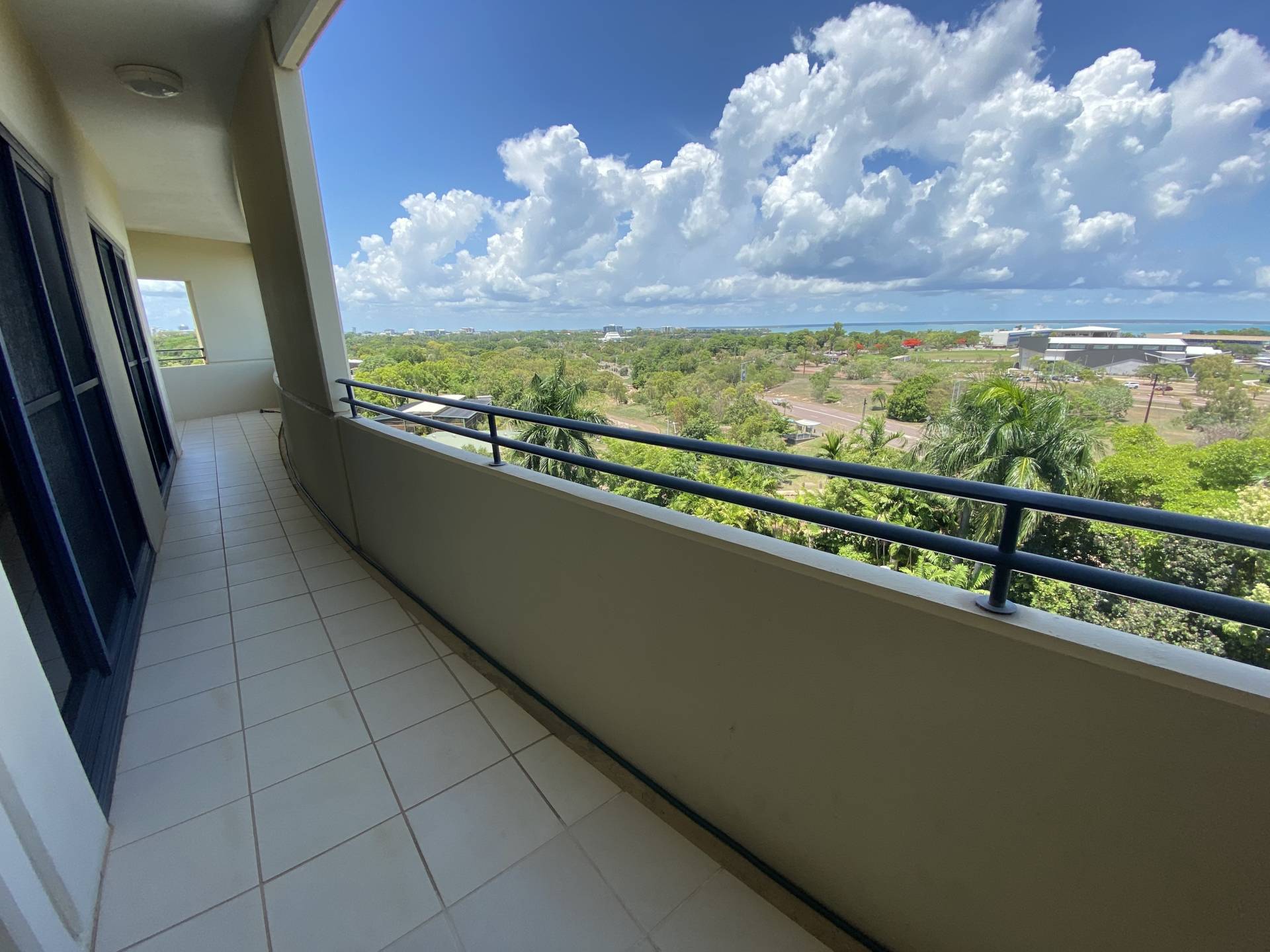 - Open plan living extending to balcony with views of the botanic gardens, Mindil beach, the ocean and city