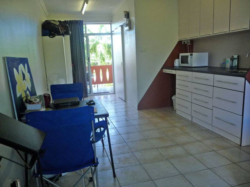 The kitchen has lots of draws, a double stainless steel sink, a Microwave and near new Refrigerator. Sliding doors go out to the balcony and the Studio comes with built-in robes and a sparkling bathroom.