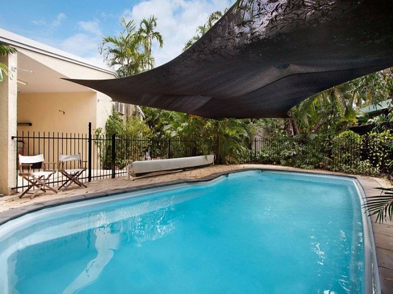 Sandstone paving stones flow from the verandah and pathway out to the inground swimming pool which is securely fenced for safety.