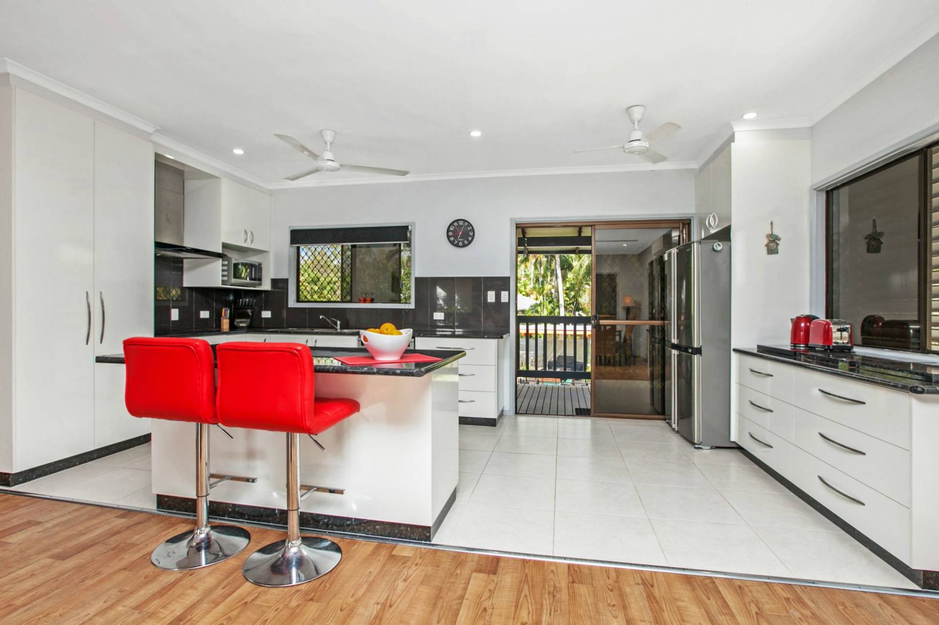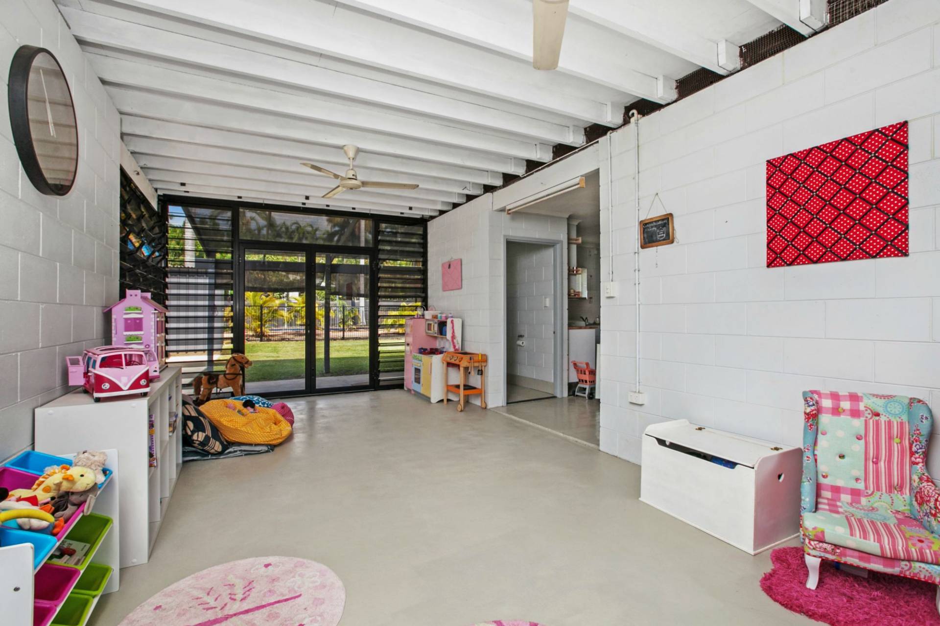 - Downstairs there are French doors and louvre windows – so breezy