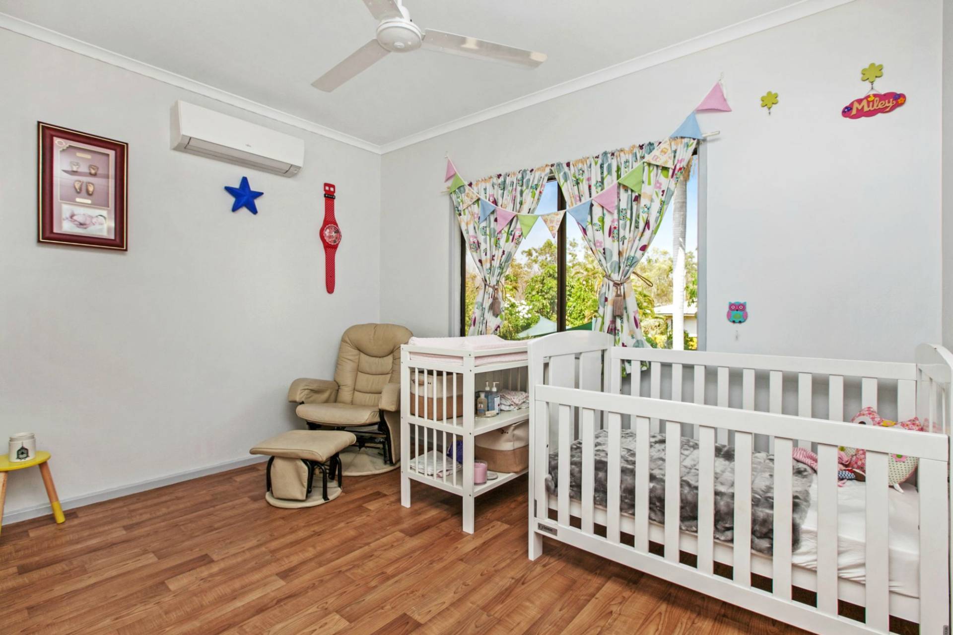 - Three spacious bedrooms upstairs each with split system air-conditioning