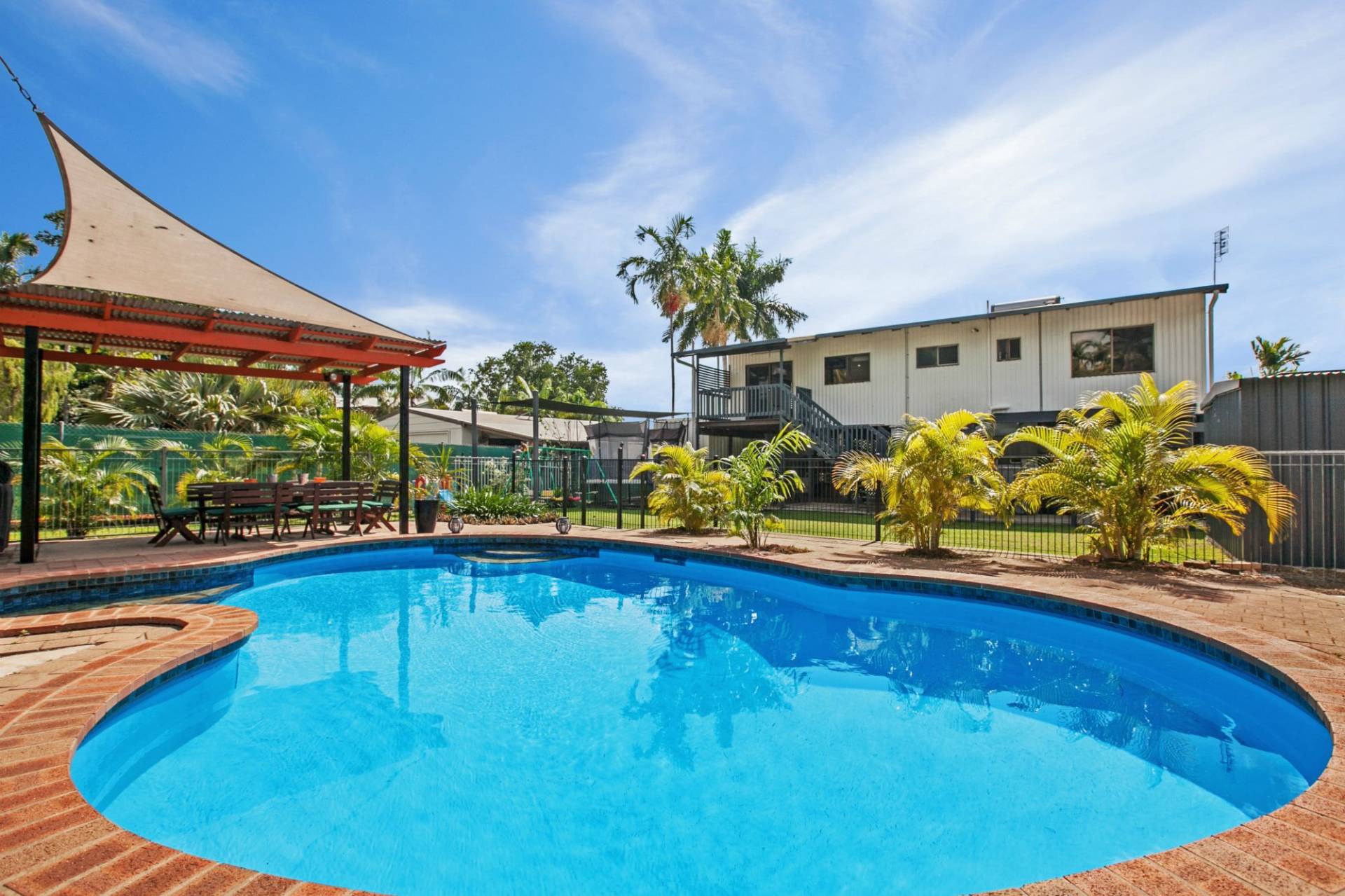 - The back garden is brilliant – the securely fenced pool it is like a private resort