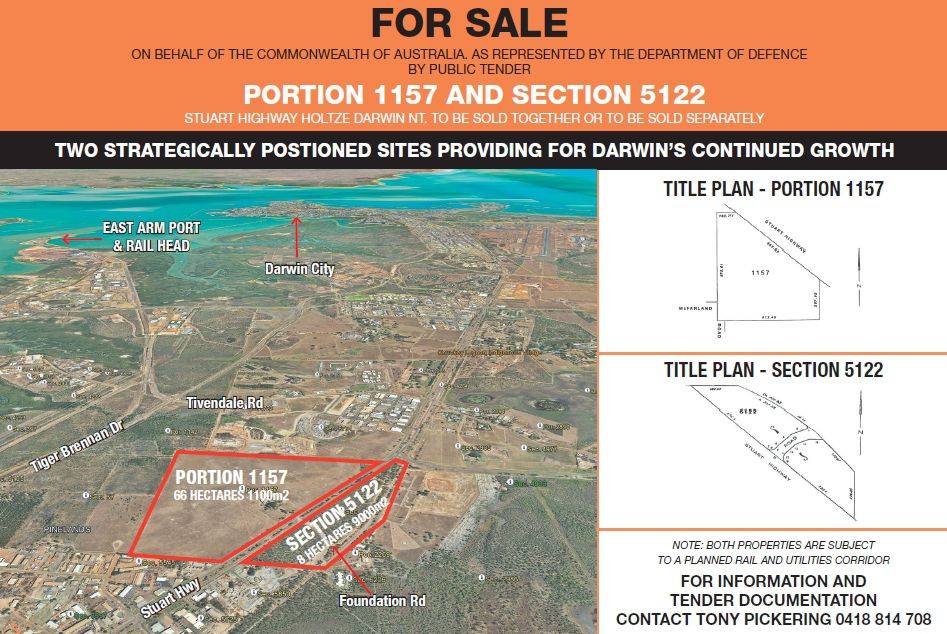 Portion 1157 and Section 5122 Stuart Highway Holtze Darwin NT to be sold together or to be sold separately.